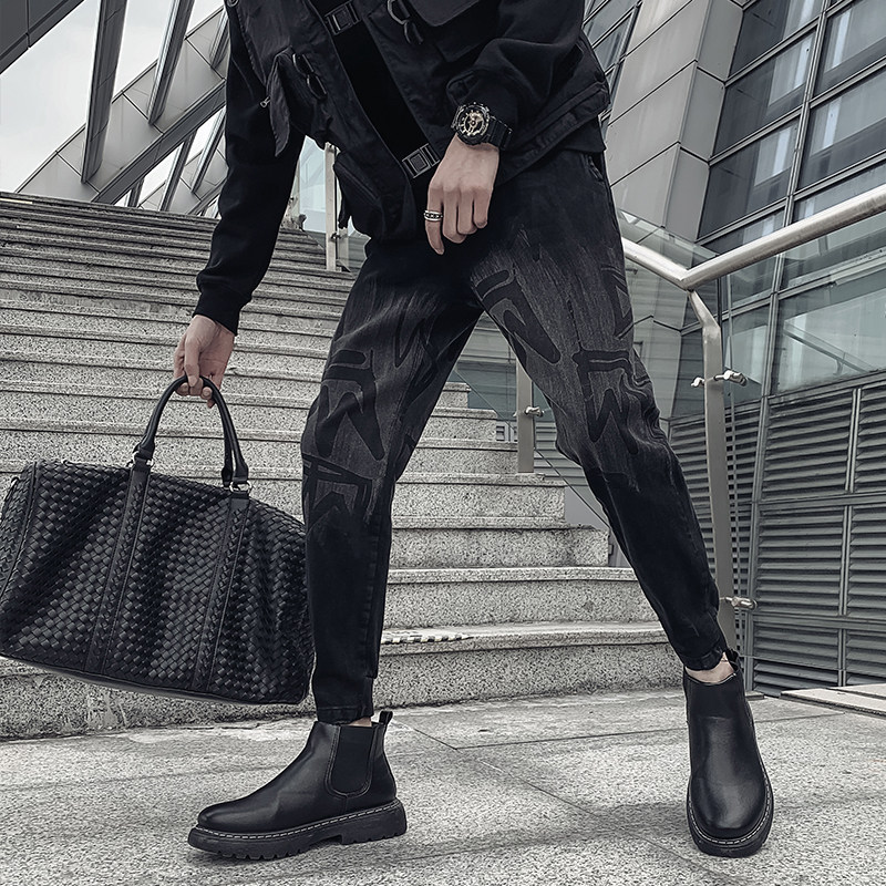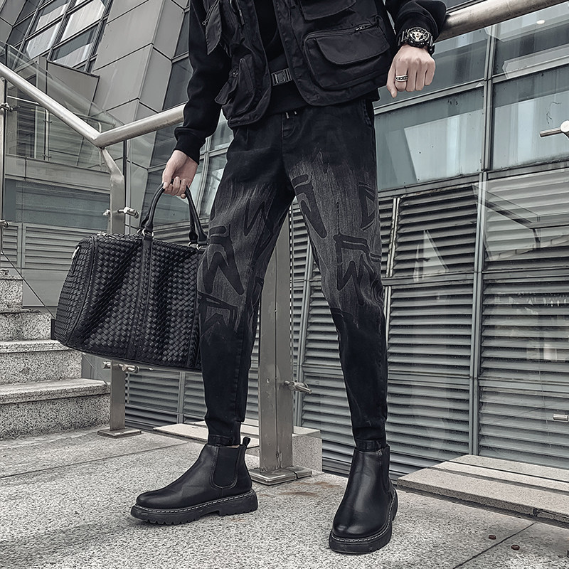 Jeans men's Tide brand foot spring and autumn trend Ruffian winter clothes plus velvet thick casual long pants 2021 New