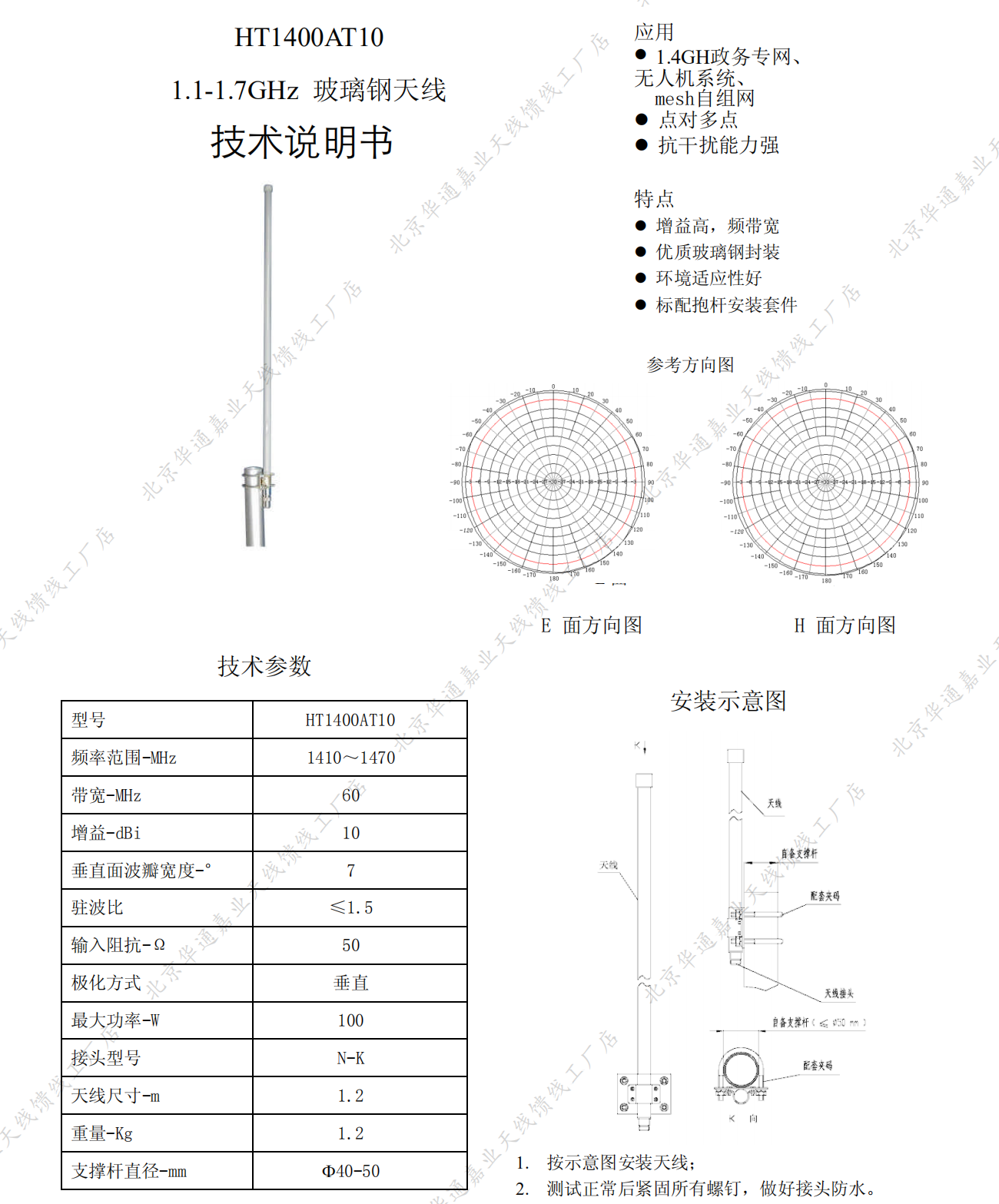 1 4G Administrative special network drone base station antenna 10dBi 1410-1470MHz omnidirectional glass fiber antenna