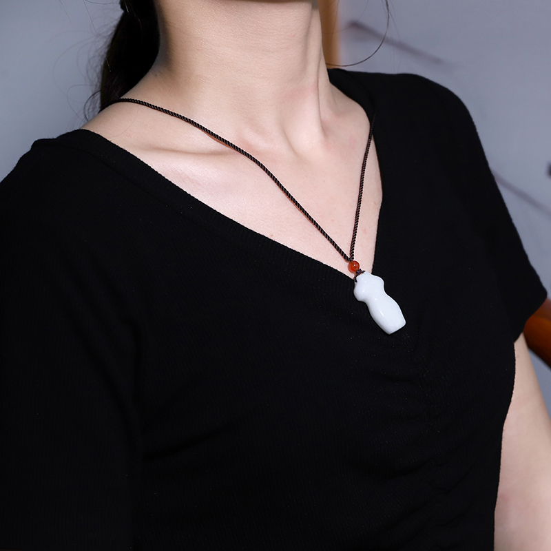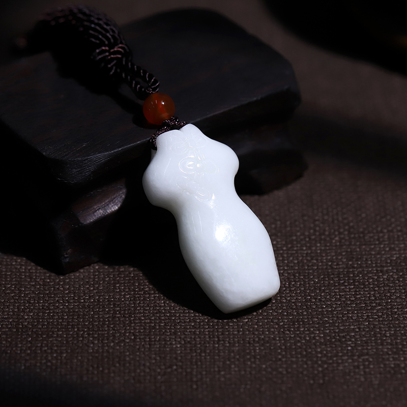 Xi'an Blue Field jade qipao pendant finely carved goddess's flag opens with a golden coat of jade
