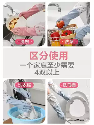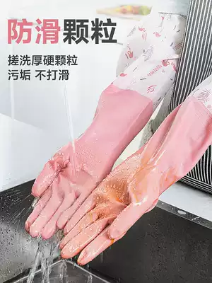 Kitchen dishwashing gloves female thickened plastic winter laundry brush bowl waterproof extended winter housework cleaning and durable