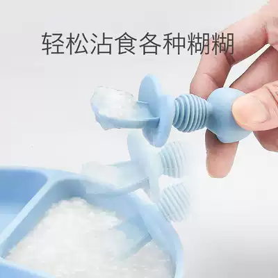 joovy baby short handle silicone spoon Learn to eat training baby spoon Children lick spoon eat food