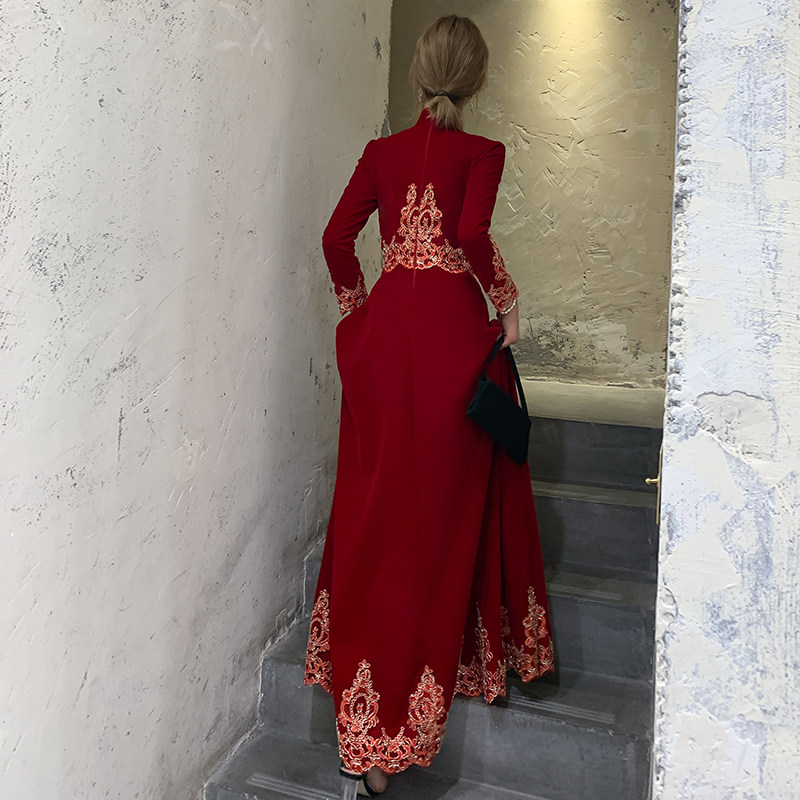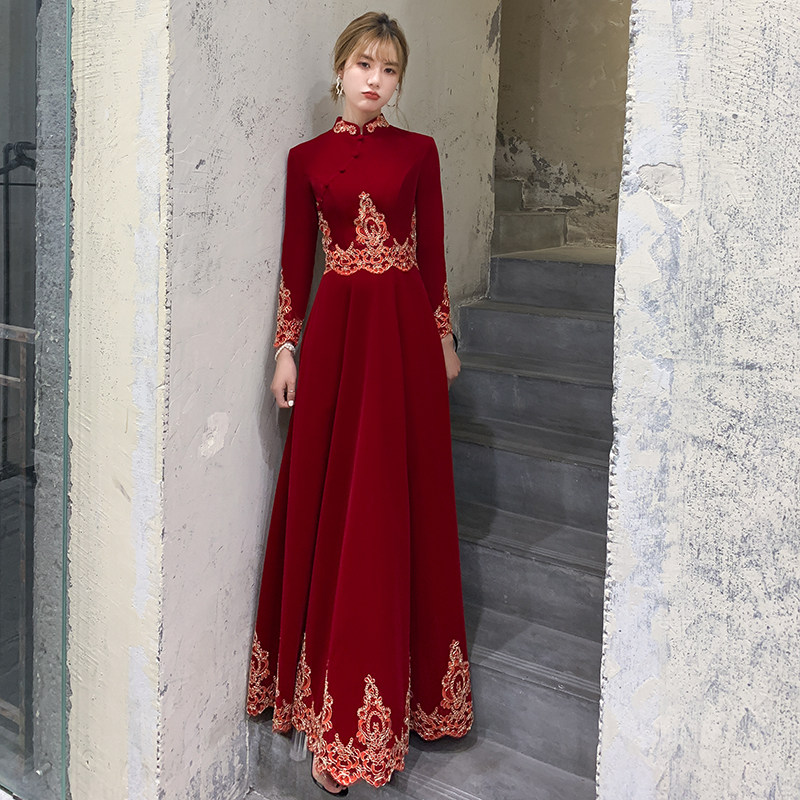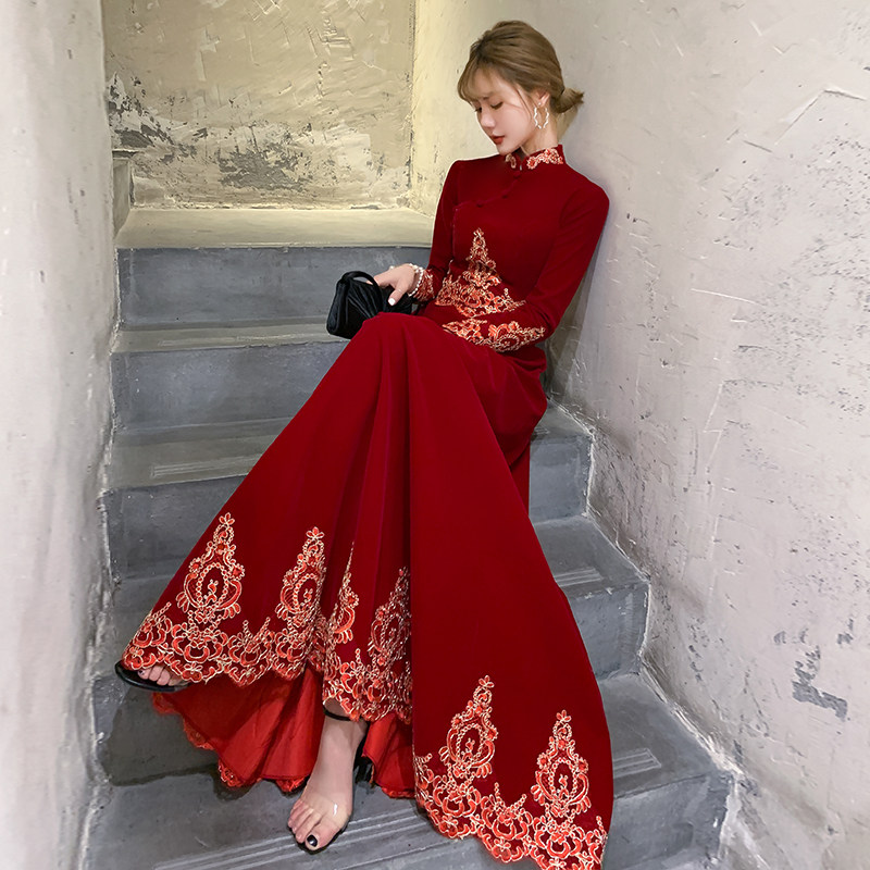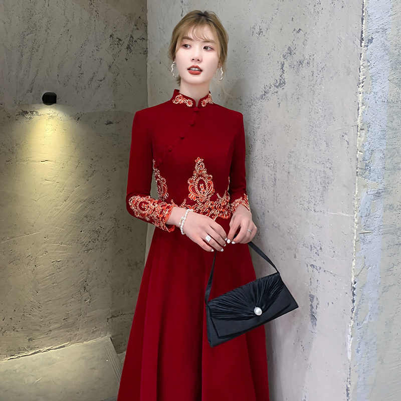 Chinese cheongsam toast bride winter Velvet wine wedding autumn winter engagement dress dress women long sleeve winter