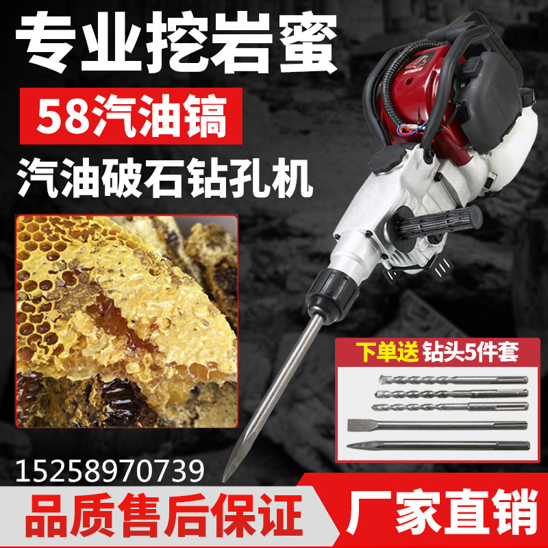 Jinhe four-stroke gasoline pickaxe rock drill open mountain oil hammer small drilling machine to dig rock honey rock breaking impact drill