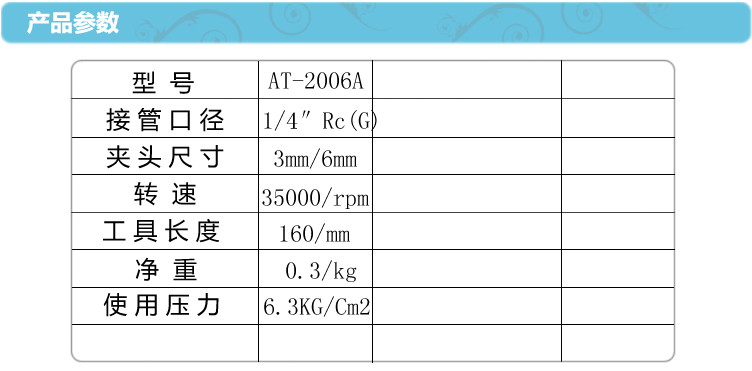 Taiwan AT-2006A high speed wind grinding pen Pneumatic grinder pen grinder pen clamping 3mm 6mm