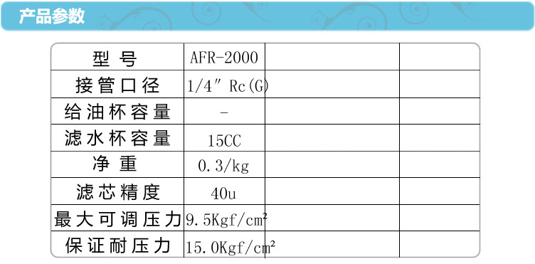 Pneumatic Single Lattice Piece Mini Oil Water Separator Air Compressor Filter Taiwan Treasure-type AFR-2000