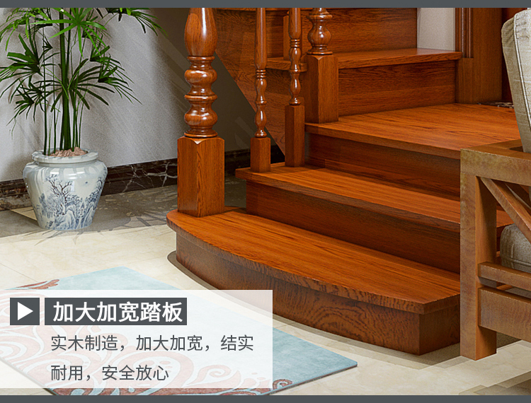 Custom Indoor Solid Wood Stairs Whole Home Loft Duplex Red Oak Treads Log Columns Villa Beijing