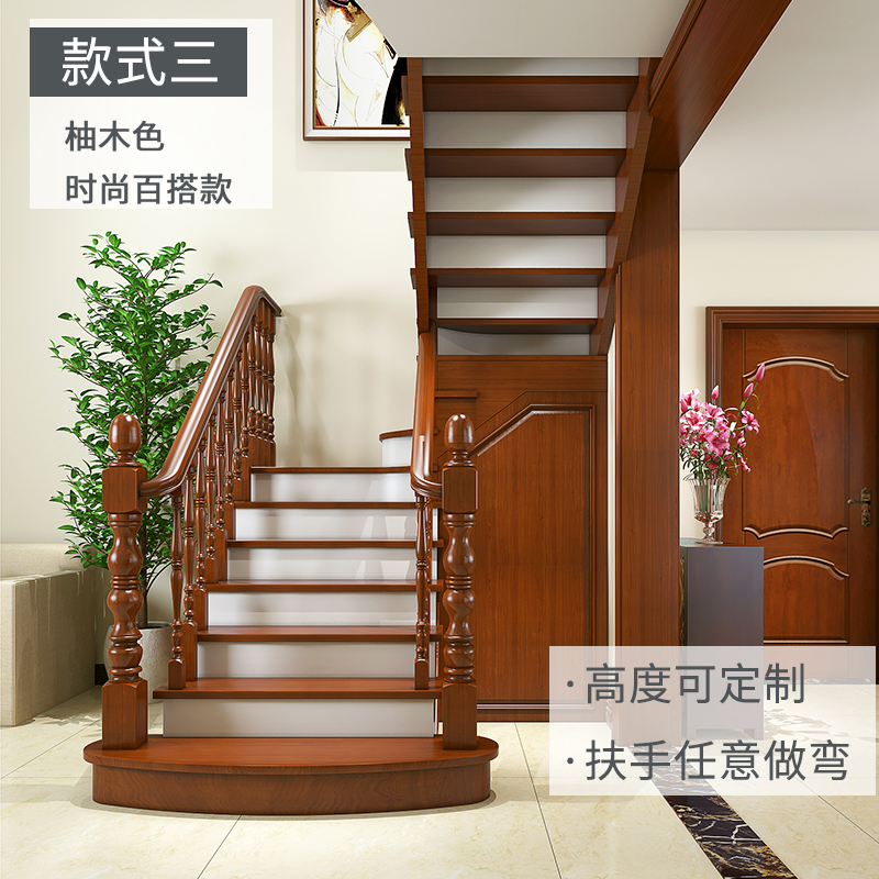 Rubber wood one step with one side guardrail Red oak one step with one side guardrail measuring wire drawing hot bending tool
