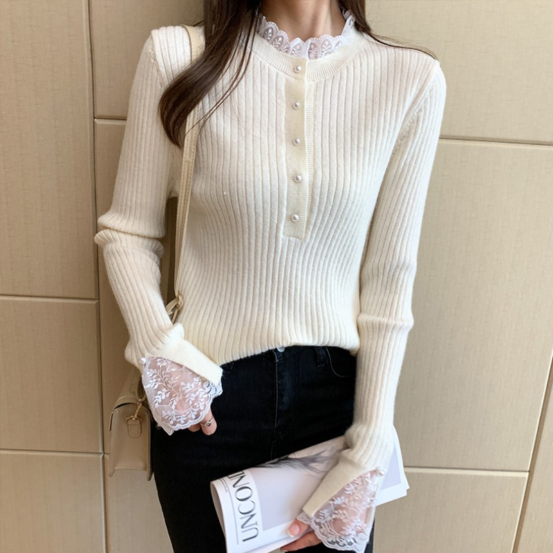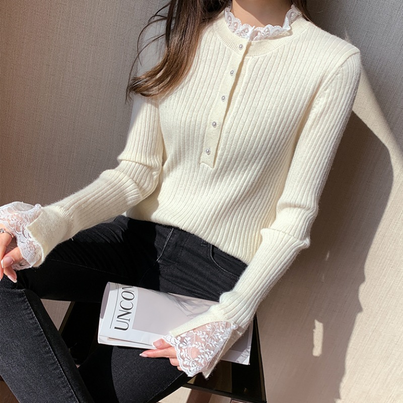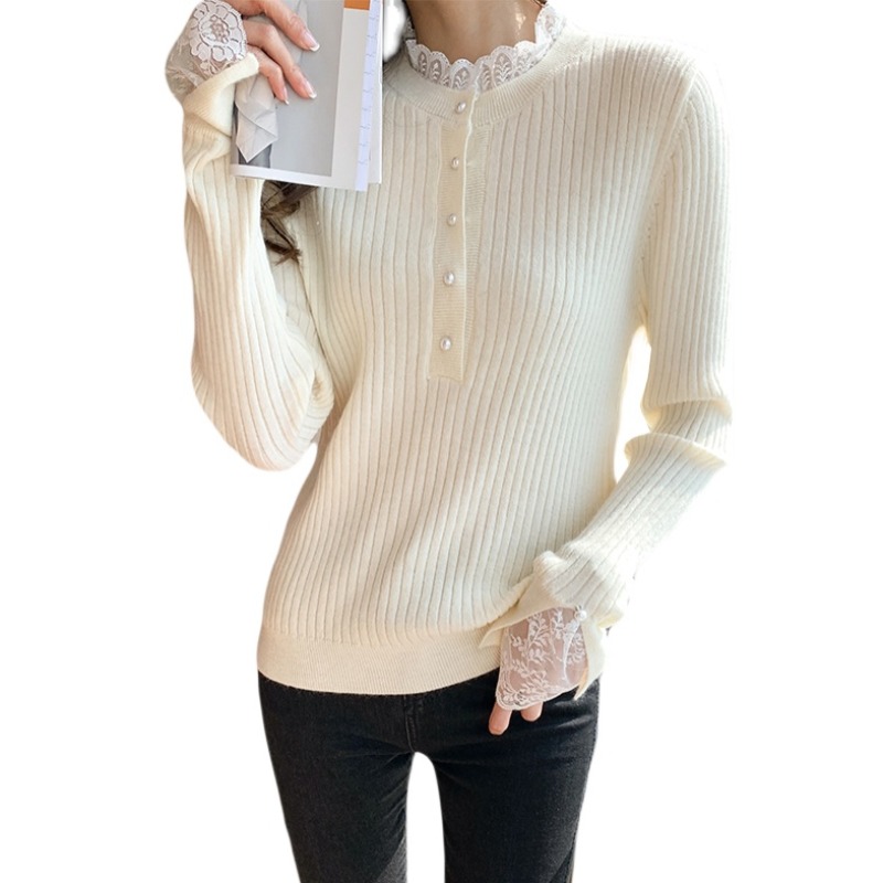Sanskrit lace semi-high collar bottom shirt women's spring 2022 New internal hitchhiking to thicken knit sweater