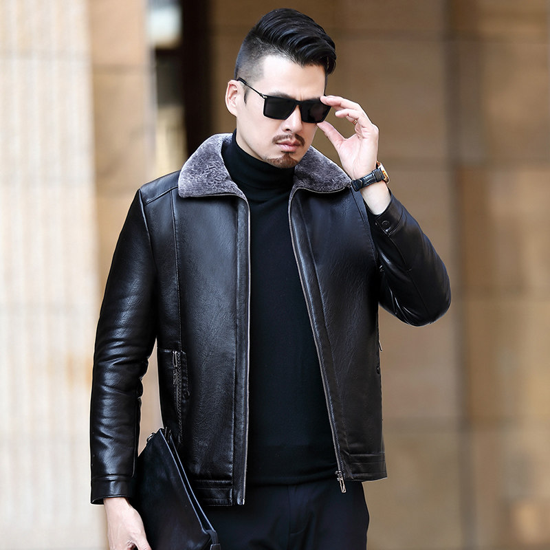 Woodpecker Haining Leather Jacket Men's Middle-aged Dad Wear Fur One Plus Velvet Thickened Sheep Leather Jacket Jacket