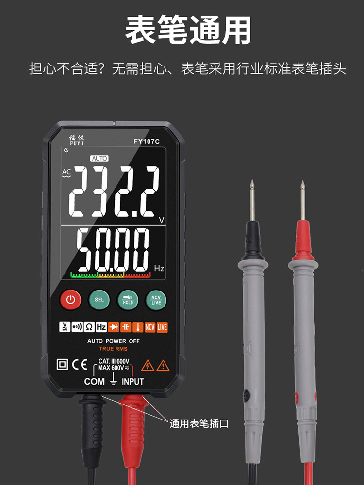 Smart digital multimeter high-precision poo small portable fully automatic anti-burn dual mode universal table FY107C