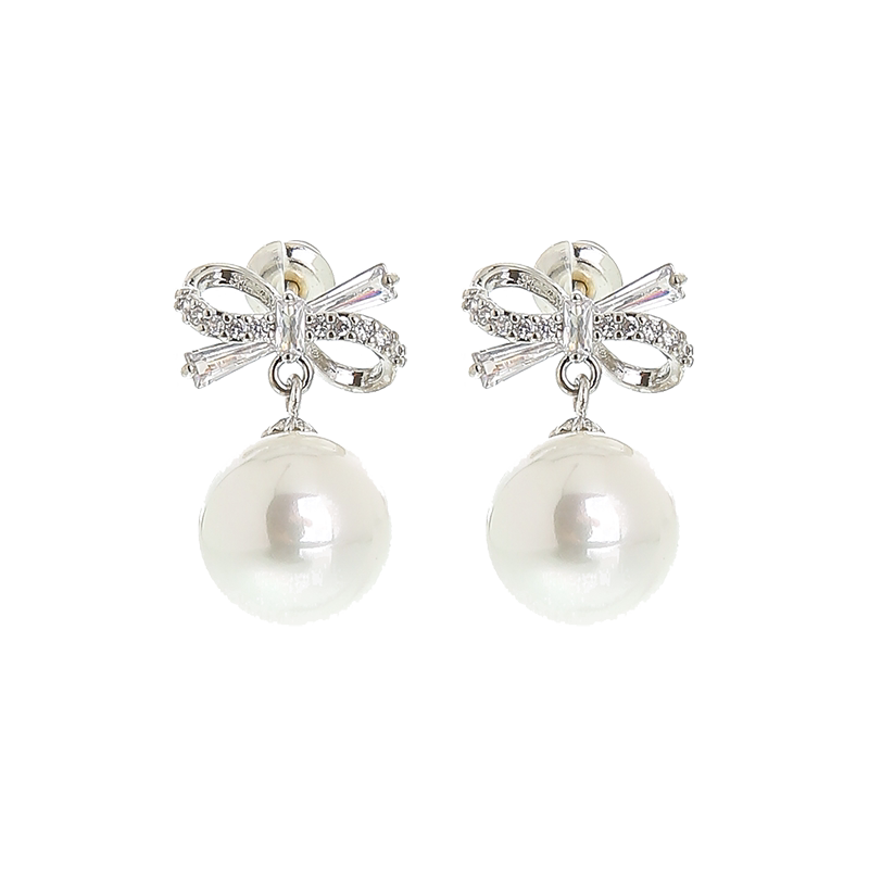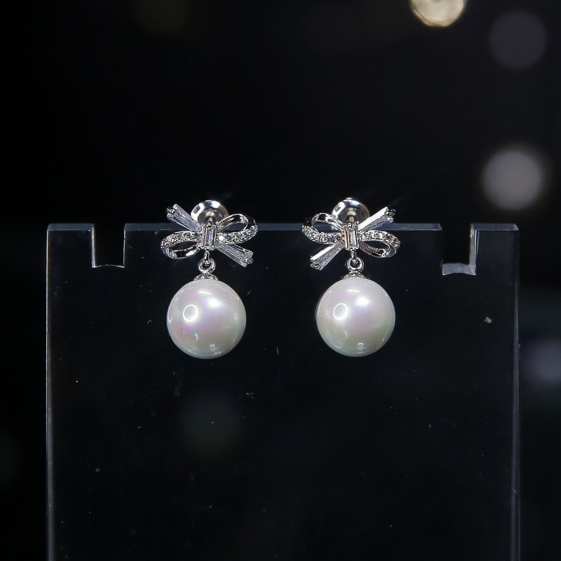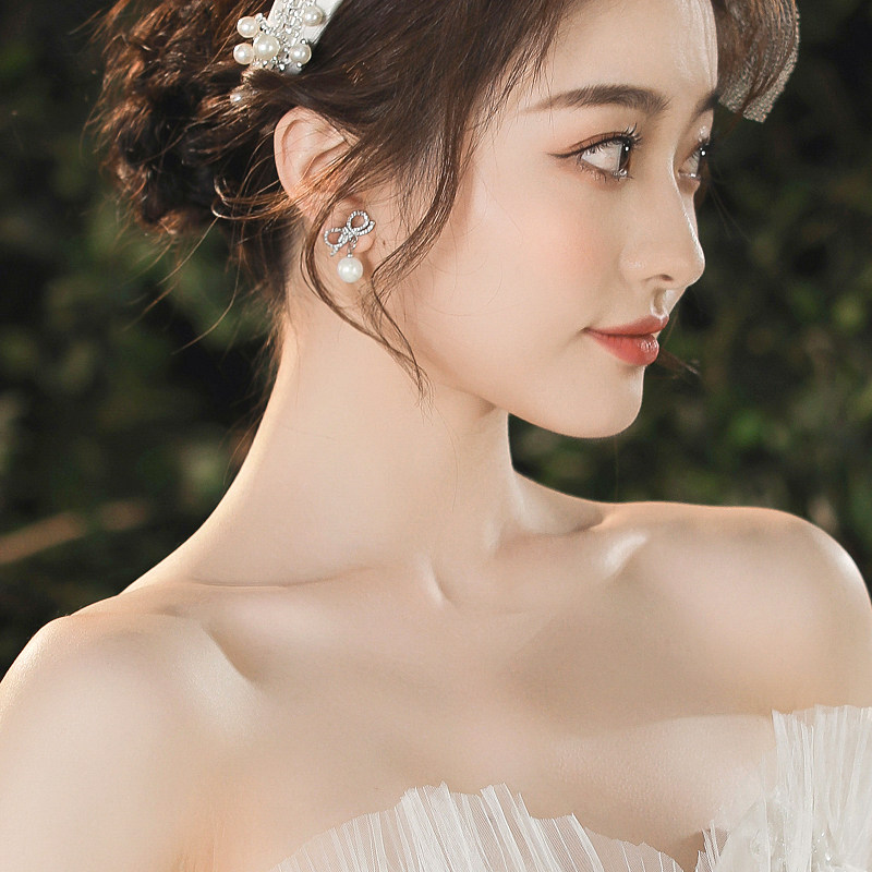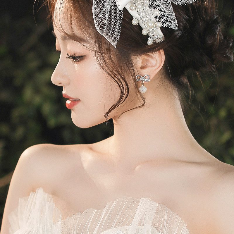 Bride's new Korean pearl earrings butterfly knot water drill ear needle Wedding Dresses Dresses Dresses of the Eyes Joux
