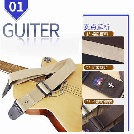 Guitar strap folk electric guitar bass shoulder strap thickened and widened classic personality diagonal strap for men and women