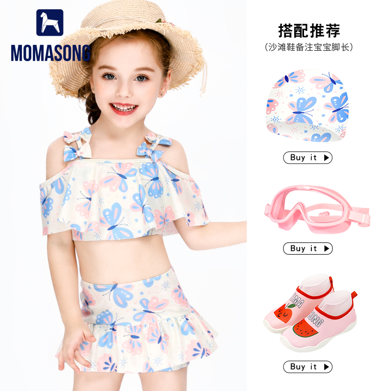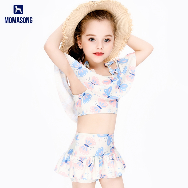 Momasong Children's Swimsuit Girls Middle-aged and Older Children Two-piece Korean Skirt Bikini Girls Student Hot Spring Swimsuit