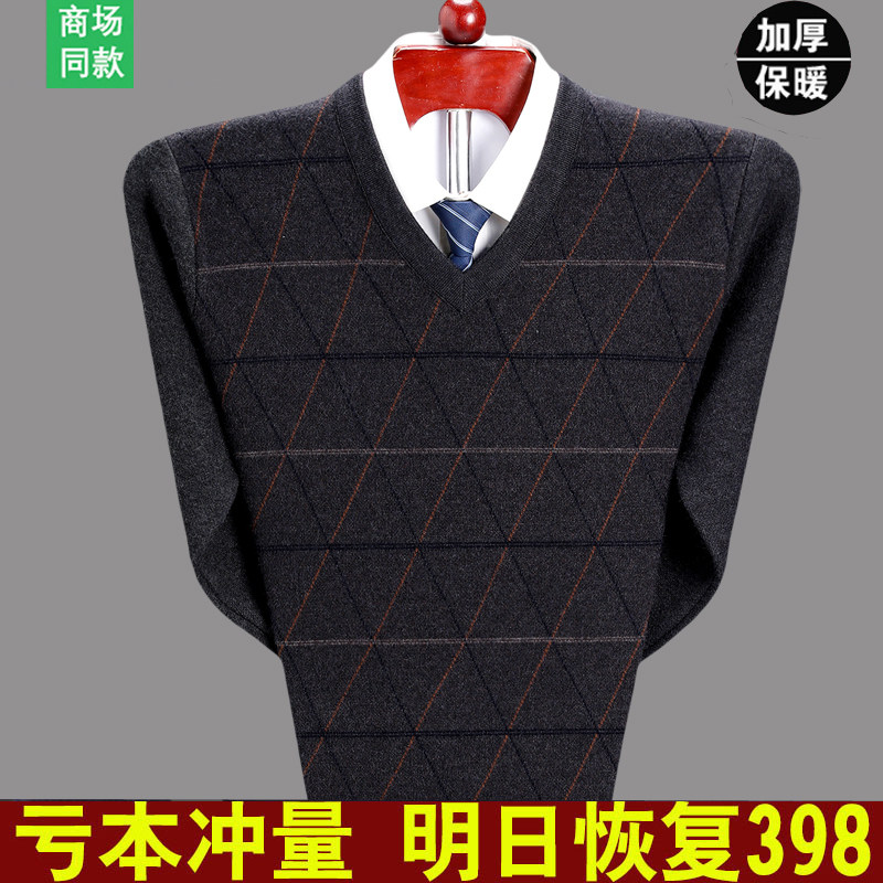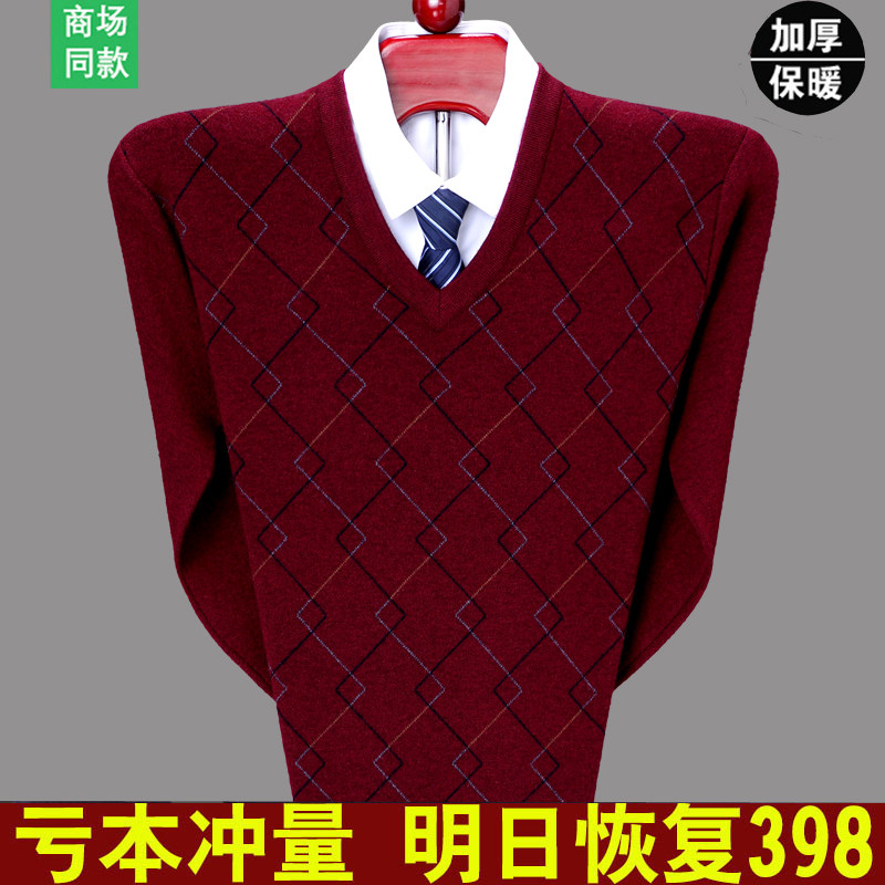 Spring bamboo pure wool male V collar thickened mid-aged business V collar cashmere sweatshirt large size daddie daddie dpa