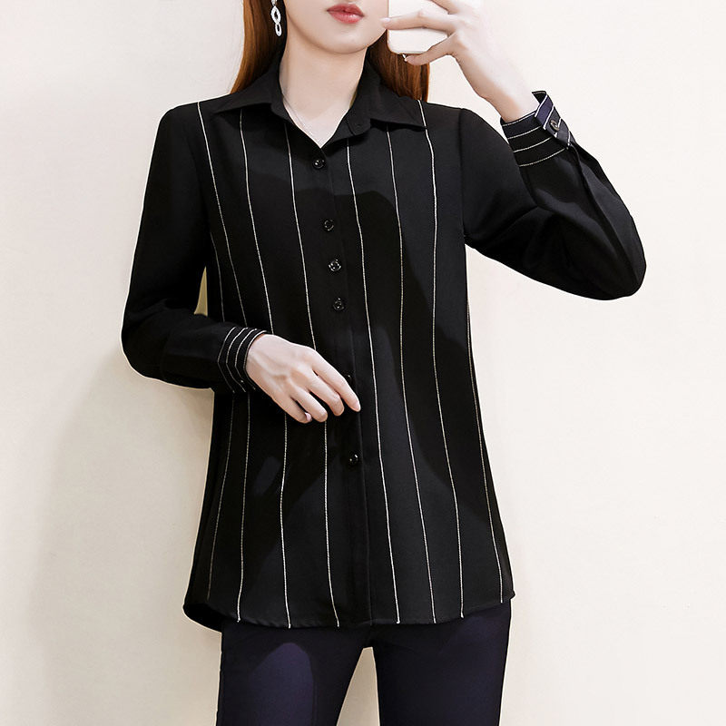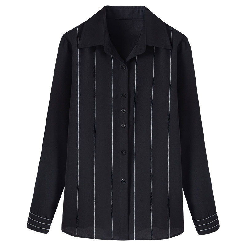 Black shirt woman 2020 new large size workwear Career snowspun striped long sleeve shirt 200 catty undershirt