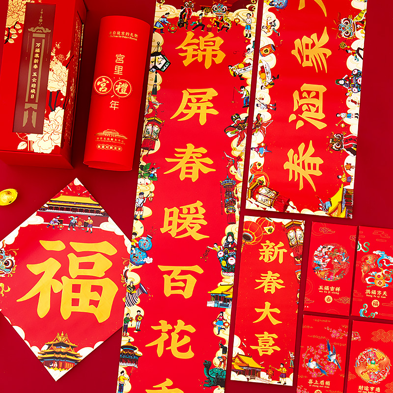 Forbidden City Wenchuang 2023 New Year of the Rabbit New Couplet Gift Package Spring Festival couplets for the New Year Spring Festival God of Wealth Fu word door stickers for home use