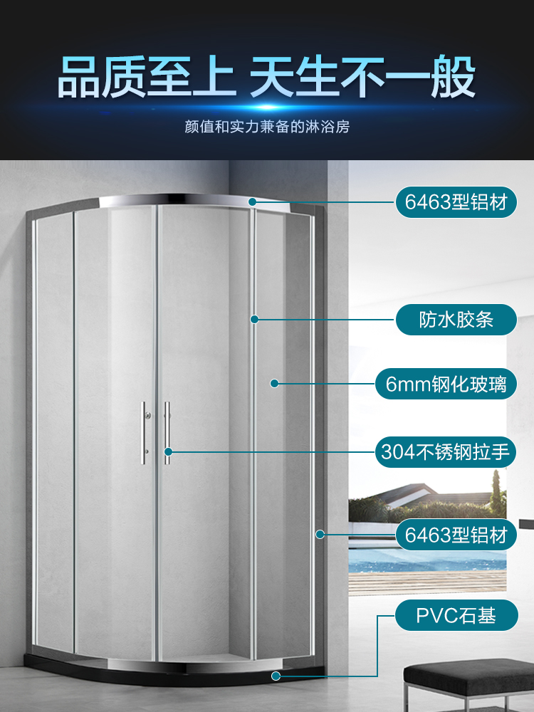 Arrow sign overall shower room aluminium alloy profiles Dressing Room Dry Wet Separation Bathroom Glass Partition Arc Fan Bath