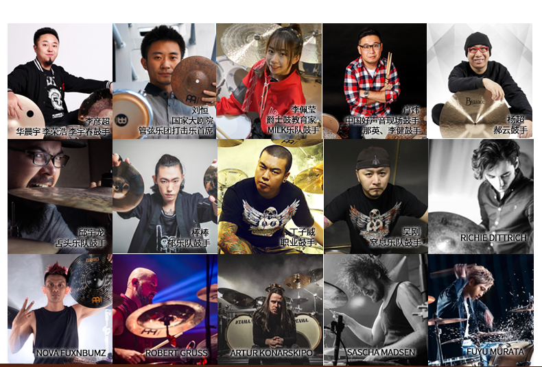 5 sets of cymbals 22-inch heavy-duty thrashing cymbals 13-inch fast-stepping on cymbals 14-inch quick-stepping cymbals 6-inch water cymbals 8-inch water cymbals 10-inch water cymbals 14-inch anti-cymbals 16-inch anti-cymbals