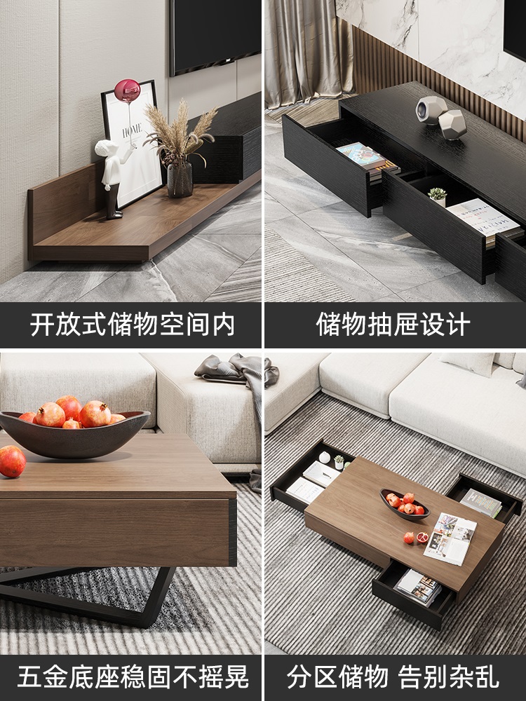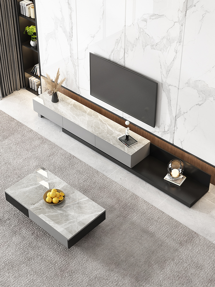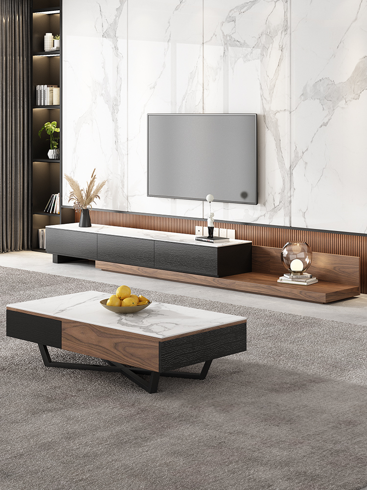 Retractable TV cabinet tea table combination Nordic modern simple small apartment rock board floor TV cabinet Black