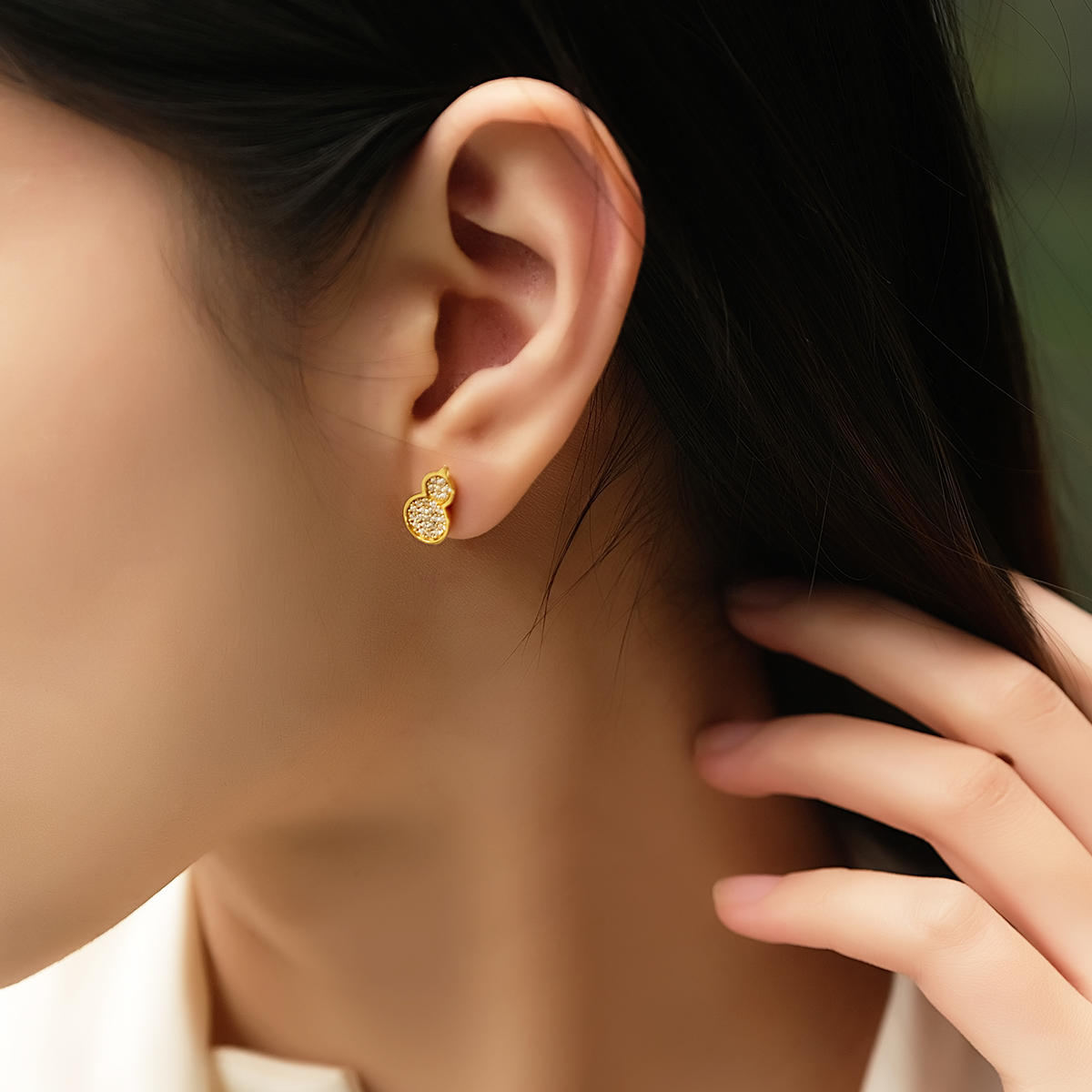 HeyJewel Fulu Splendid Gourd Inlaid Crystal Drill Small Earshot Woman 925 Silver Small And Delicate National Tide Ear Decoration