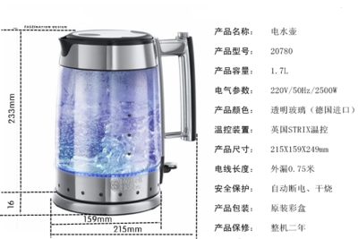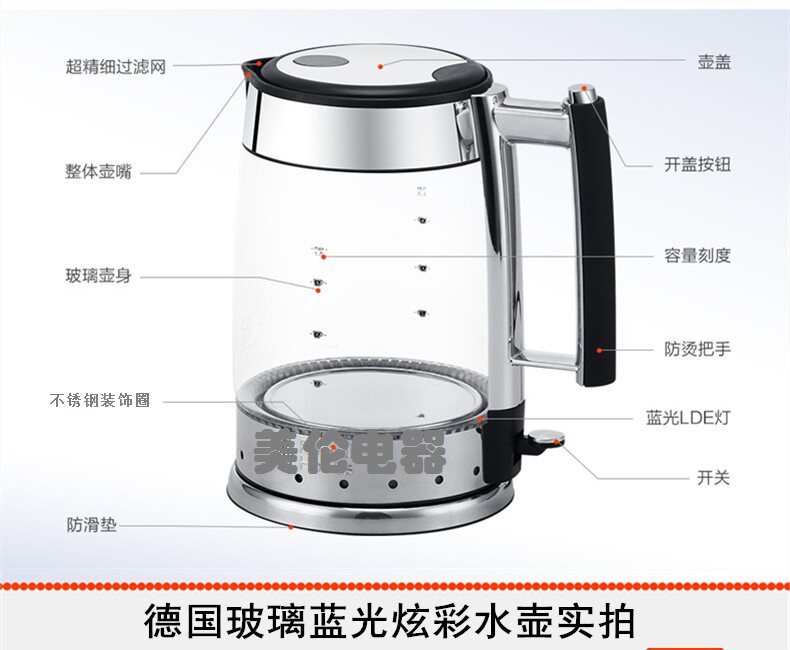 German Schott glass electric kettle household electric kettle high-power kettle UK temperature control with blue light fast
