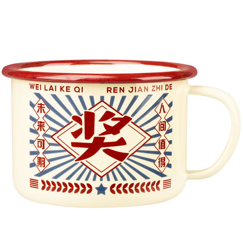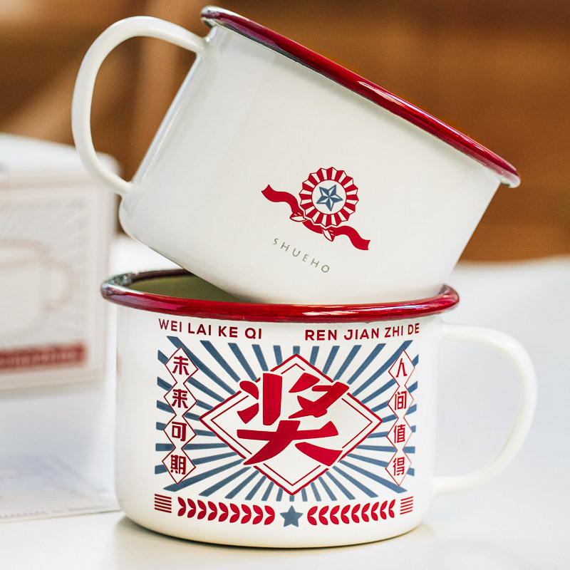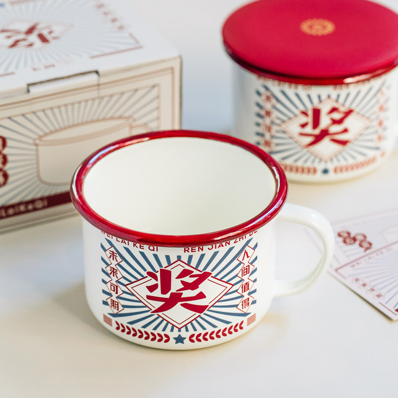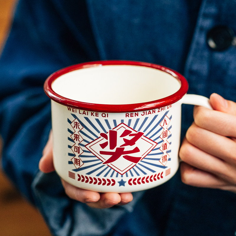 Tree enamel vintage trophy with lid cup mug Household enamel cup Large capacity milk cup Creative water cup