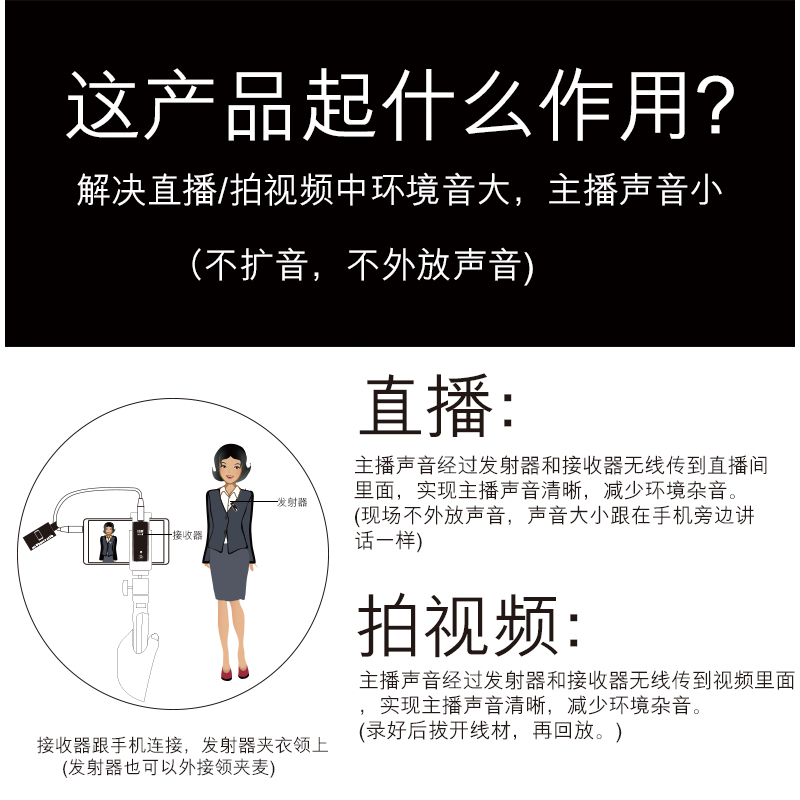 Collar clip type wireless microphone phone single eye recording self-media short film professional equipment anchor live microphone noise reduction chest wheat outdoor covering video special small bee sound