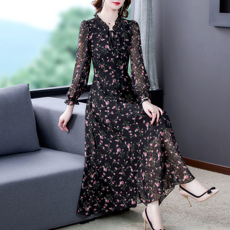 2023 - A big yard slim over knee and shredded flowers long sleeved snow spinning dress for spring and summer temperament for long dress children
