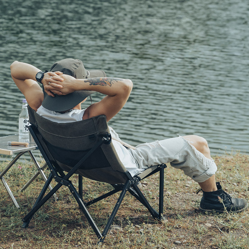 Kirman Outdoor Aesthetics Folding Chair Camping Barbecue Camping Aluminum Alloy Cotton Fabric Fishing Canvas Long Sitting Ogawa Chairs-Taobao
