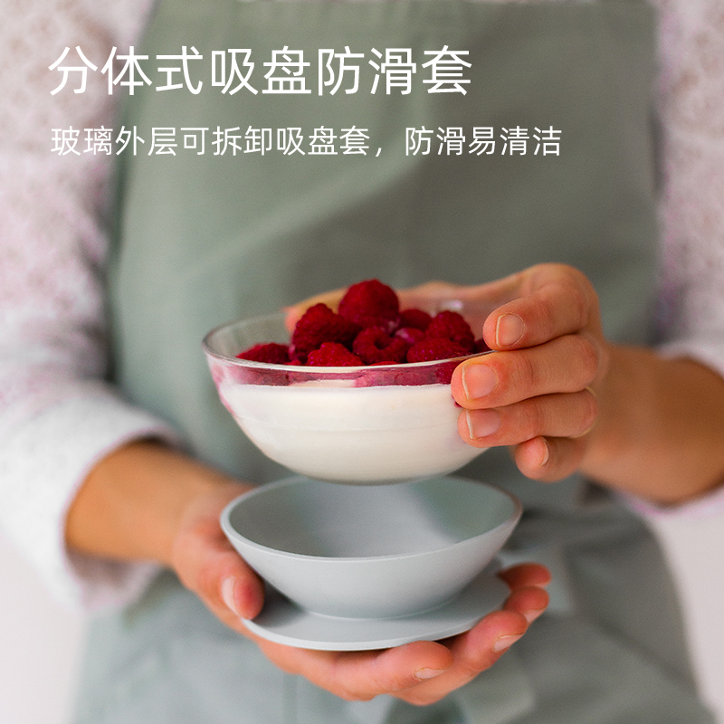 French BEABA glass suction cup type bowl silicone set Baby food bowl spoon baby plate drop-proof tableware