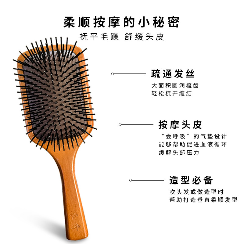 Wood handle airbag massage comb Rosewood straight tooth airbag massage comb (large) Beech round tooth airbag massage comb (large) Beech straight tooth airbag massage comb (large) Beech straight tooth airbag massage comb (small)