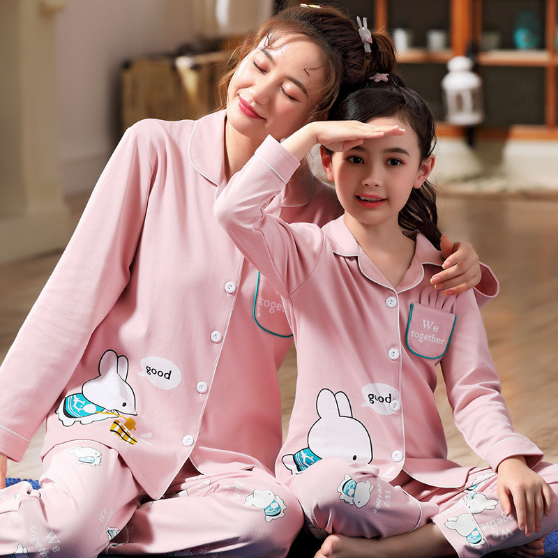 Girl baby long sleeve children's pajamas large cotton children childhood spring and autumn pure cotton mothers and daughters clothes parent-child home clothing