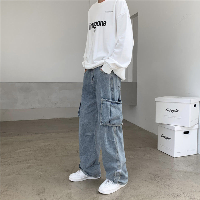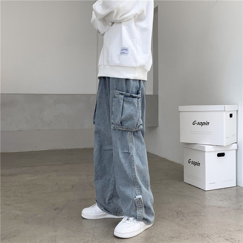 Dad jeans men's loose straight autumn tooling wide-leg trousers trendy brand ins Hong Kong trendy men's high street pants