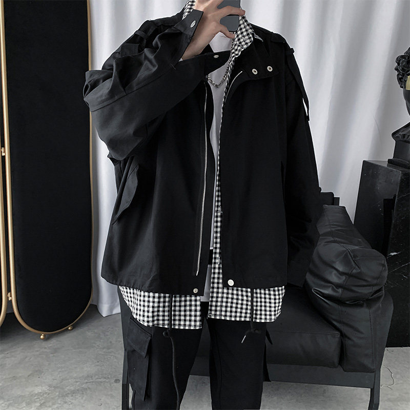 Han Jacket Male Lax in Youth Casual Cowboy Cowboy Cowl Fake Two Pieces of Puffy Coat Autumn