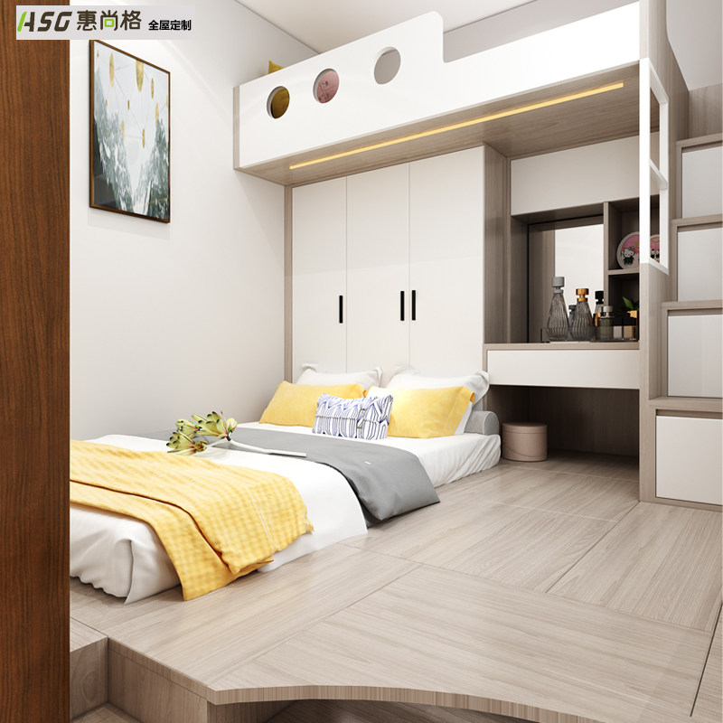 Huishang Hong Kong Bedroom tatami space Custom primary-secondary bed Full house upper and lower bunk bed up and down solid wood plate design