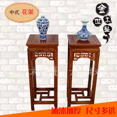 With screen flower rack Antique solid wood Chinese style flower rack Living room balcony floor flower pot rack Storage rack South Elm