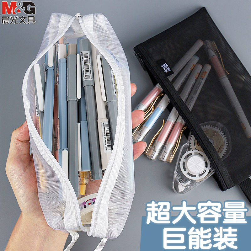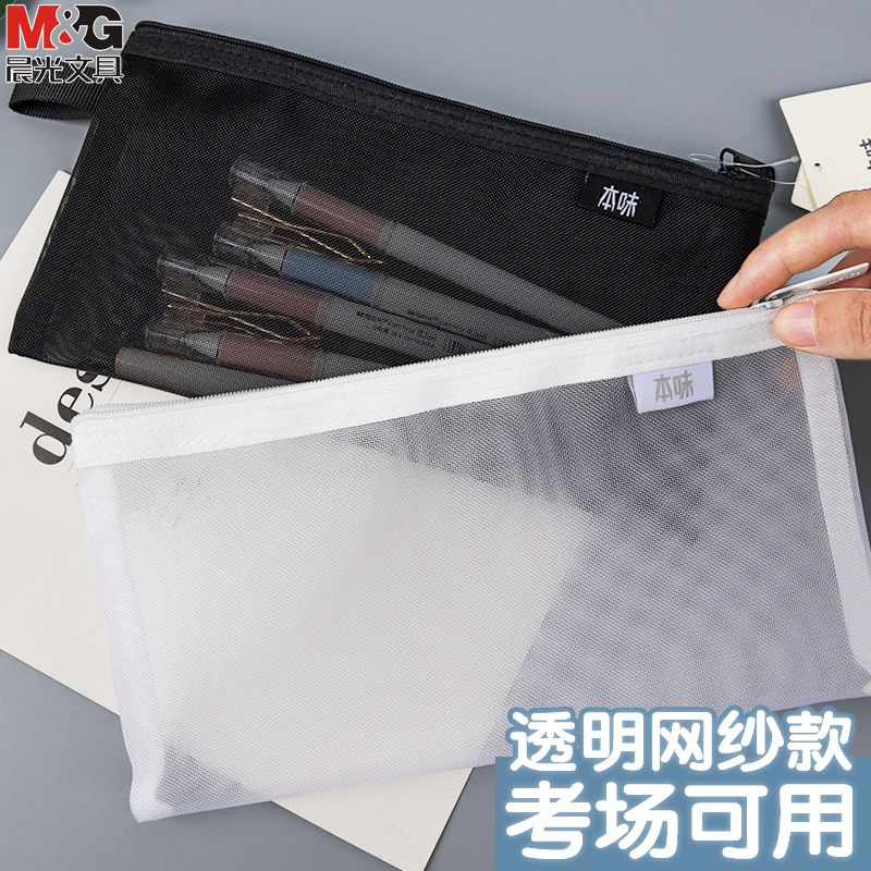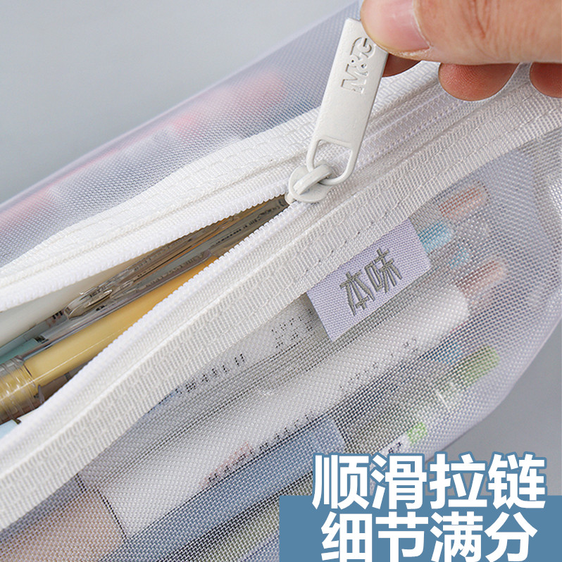 Morning light white minimalist transparent web yarn pen pouch ins day series high face value girl's version university girls grid stationery bag large capacity boys black pencil case exam special junior high school female pencil case