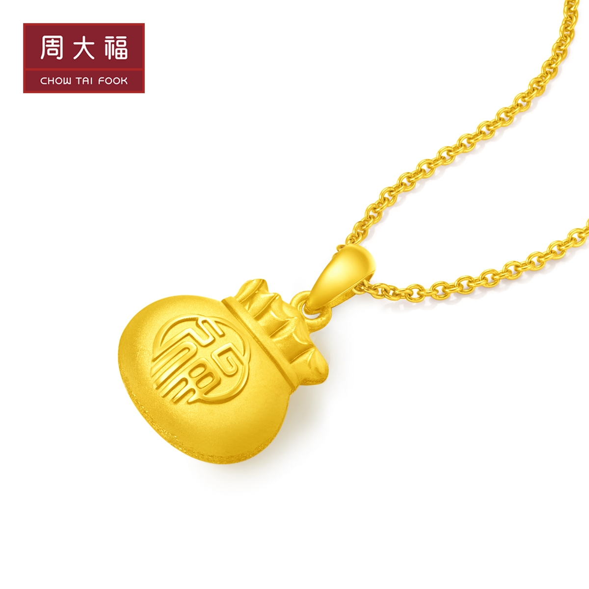 Chow Tai Fook Jewelry Fu word lotus blessing bag pure gold gold pendant price EOF269