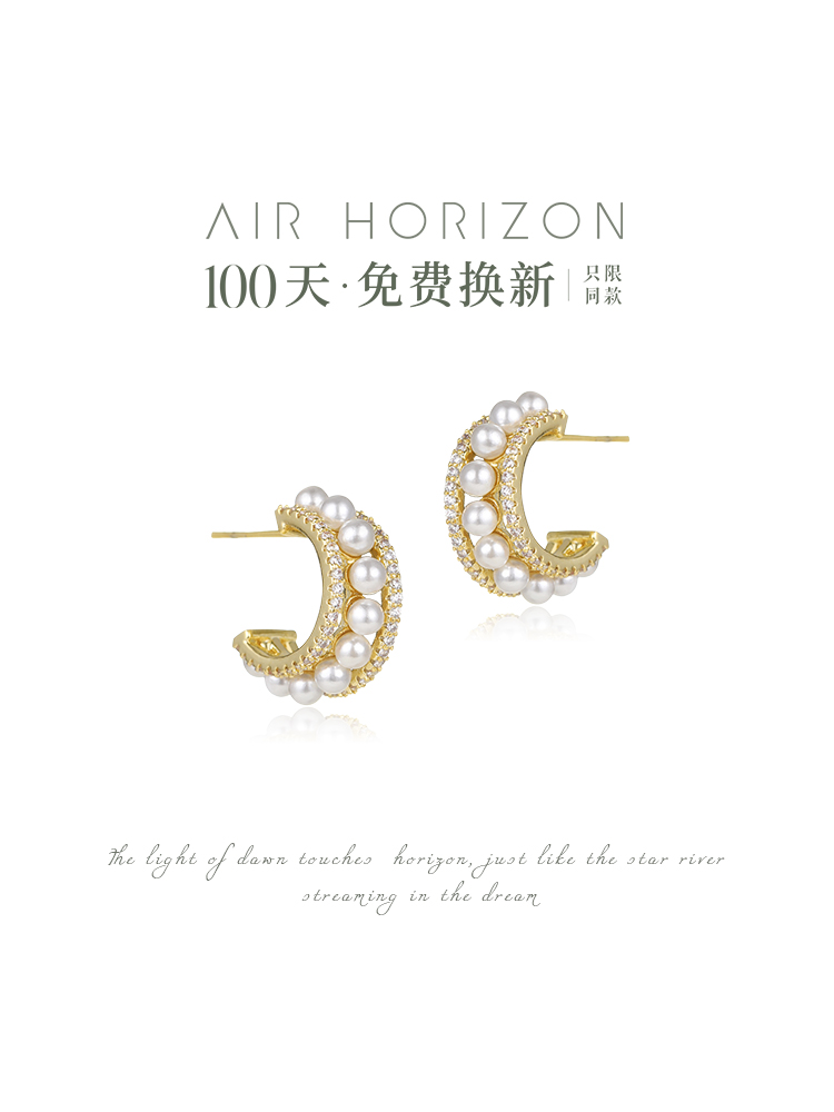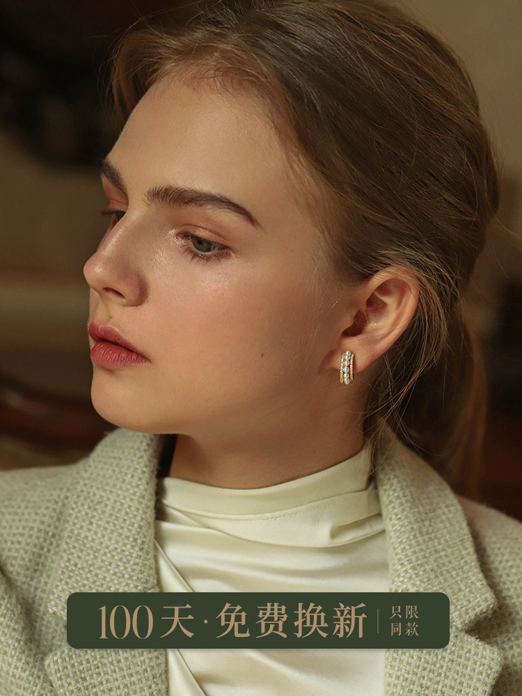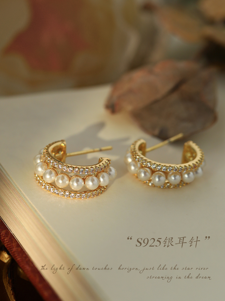 Premium Pearl Circle Earring Female Retro Harbor Female Harbour Windows Clean Design Sense Sense Atmospheric Earring