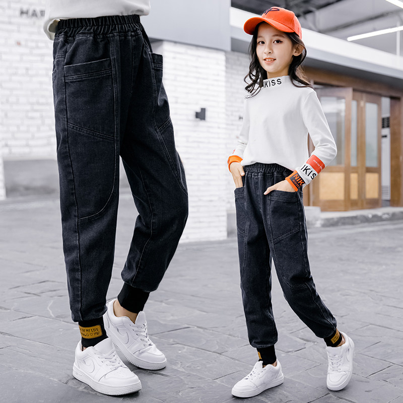 Girls ' jeans spring and autumn wear thin children's loose Korean version of the middle and large children's spring primary school black pants