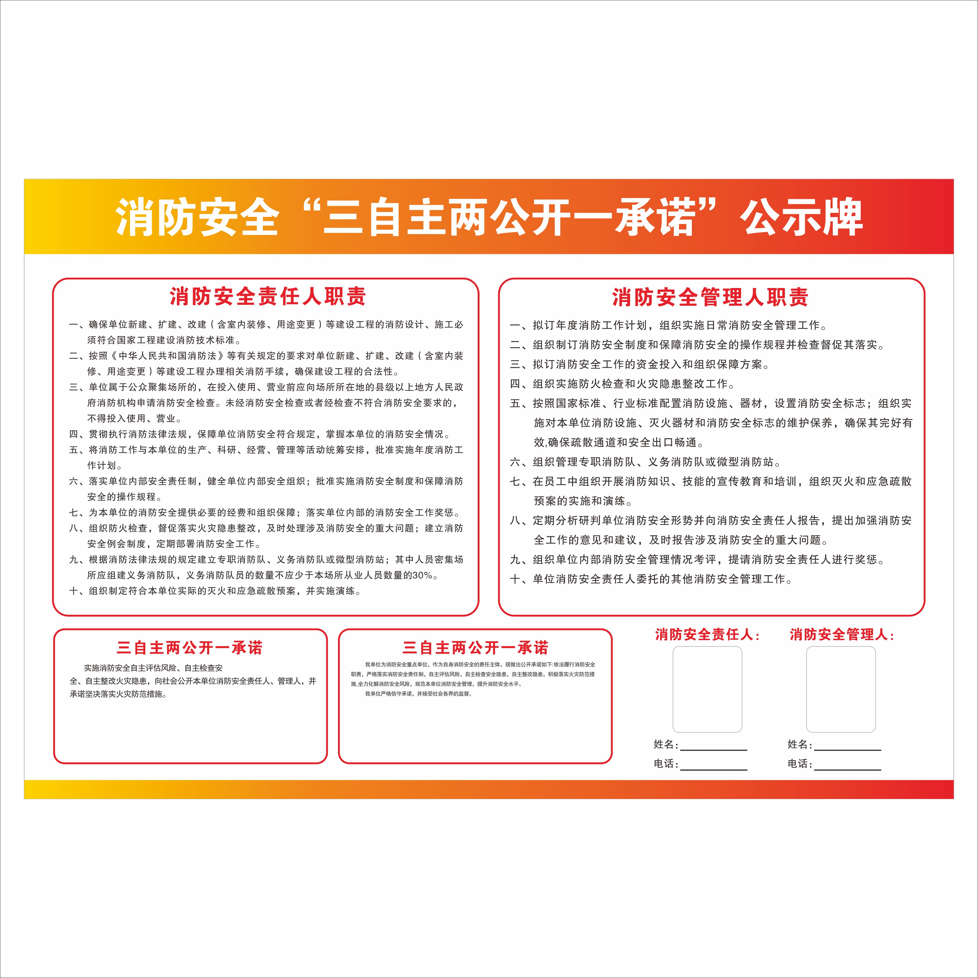 Fire protection three reminders fire safety three autonomy two disclosures one commitment public sign responsible person management bulletin board should know four abilities four understandings four meetings warning signs publicity posters new products