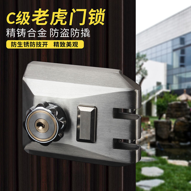 Gate Tiger Lock Old-fashioned Exterior Door Lock C Level Theft Lock Iron Door Wooden Door push and pull mobile door Automatic touch lock