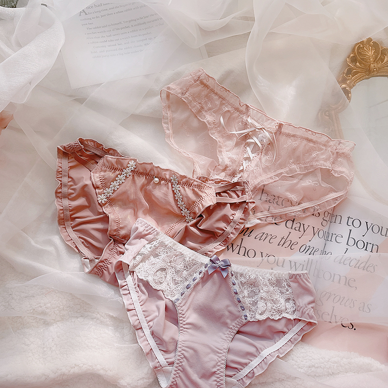 3 pairs of panties female Japanese sweet lace sexy briefs antibacterial comfortable soft girl pure desire purple shorts