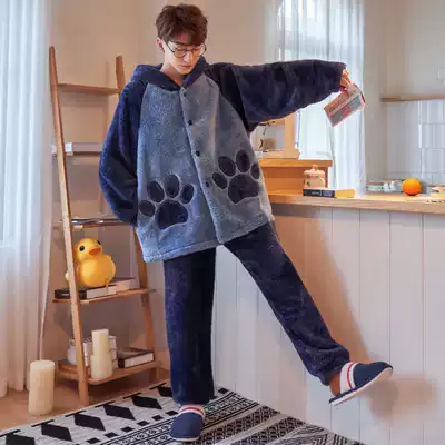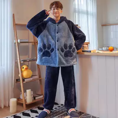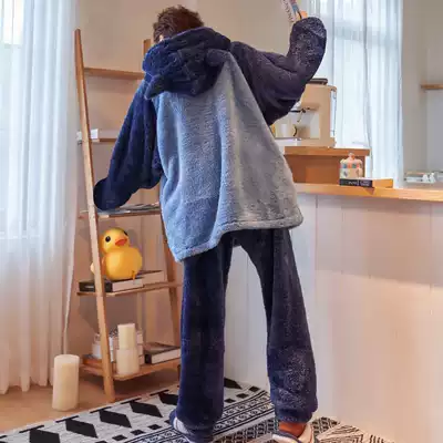 Couple pajamas autumn and winter plus velvet thickened coral velvet flannel pajamas men's home clothes new set
