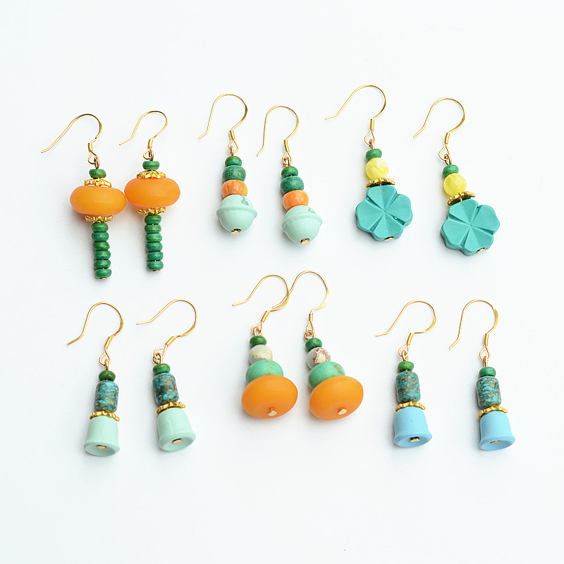 Earrings women's retro ethnic style net red women's sterling silver new trendy imitation turquoise beeswax long earrings earrings