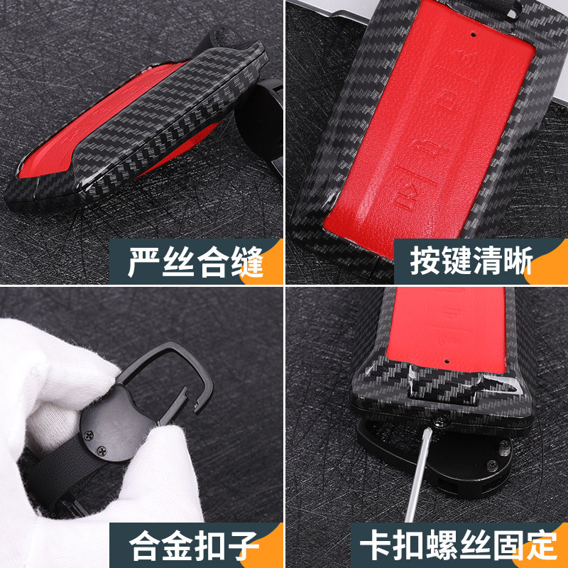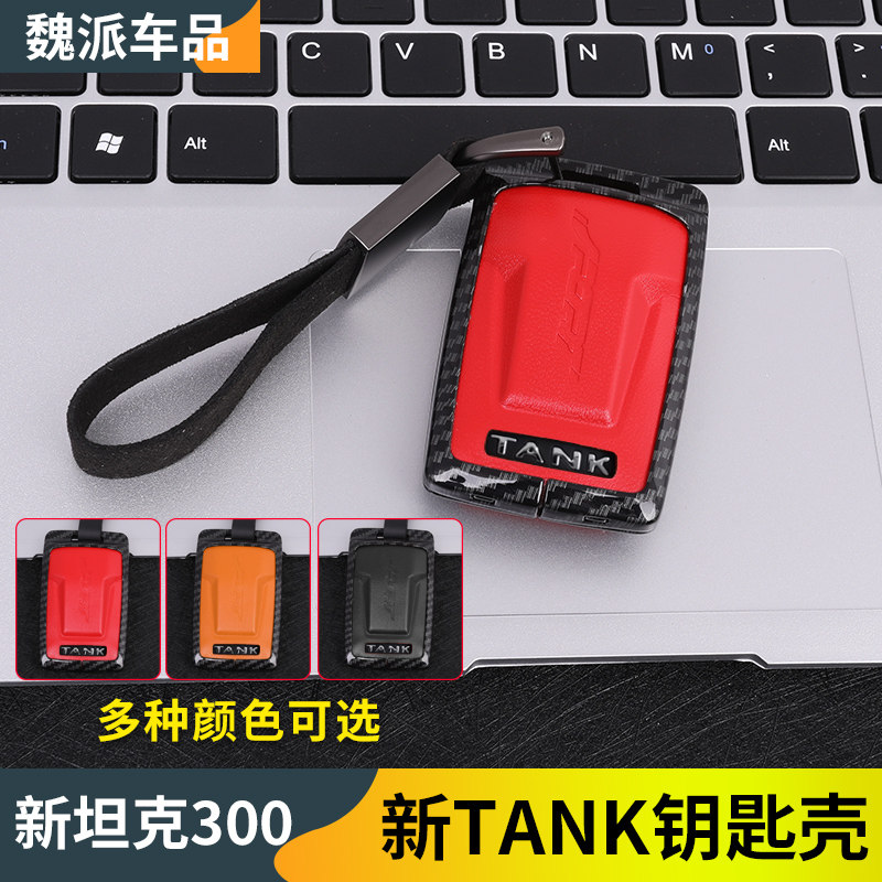 TANK key (Peach grain orange skin) - With double snap button-Zinc alloy TANK Key(Carbon fiber grain black black skin)—With double snap button—Zinc Alloy TANK Key(Carbon fiber grain black black skin