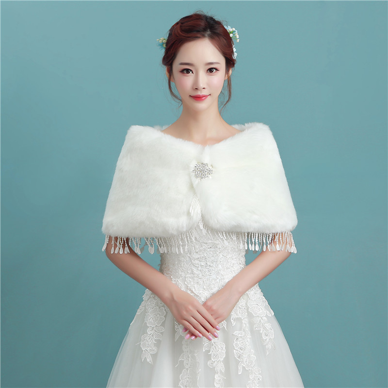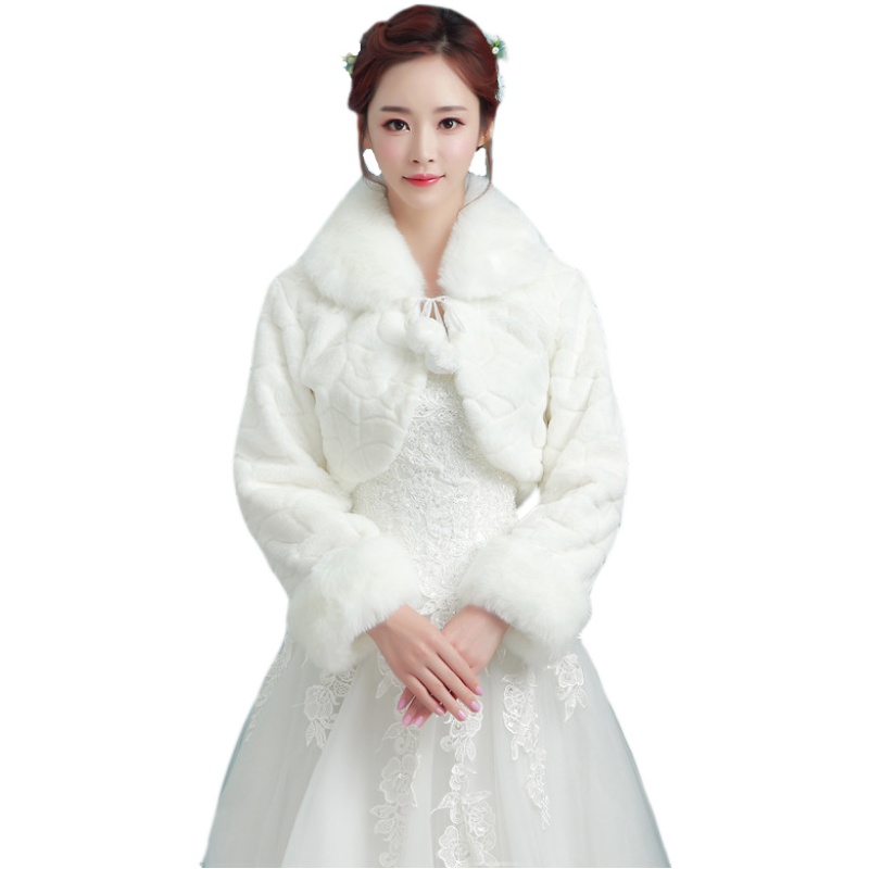 Bride wedding shawl 2021 wedding dress autumn and winter wedding warm jacket toast clothing cheongsam red and white thick fur