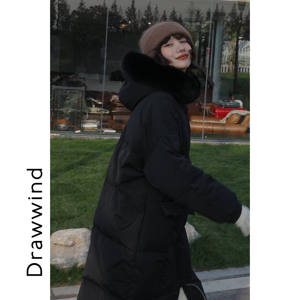 Drawwind fox hair ply feather jacket female white fashion pie middle and long winter thickening coat