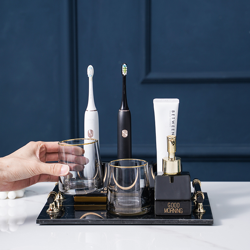 Marble high-end bathroom wash set combination home hotel model room set table cup storage storage shelf