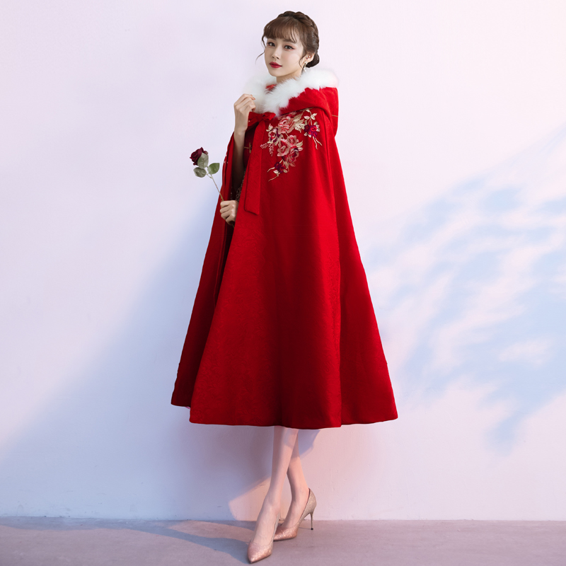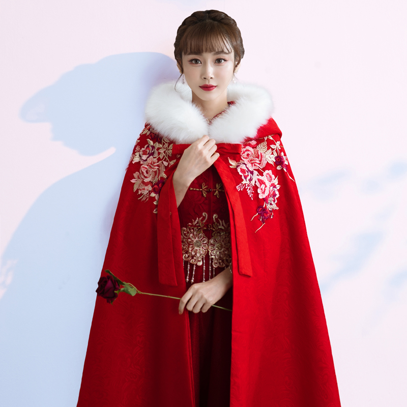 Shawl wedding bride Xiuhe clothing cloak winter toast clothing cloak Chinese wedding dress red jacket thickened and warm